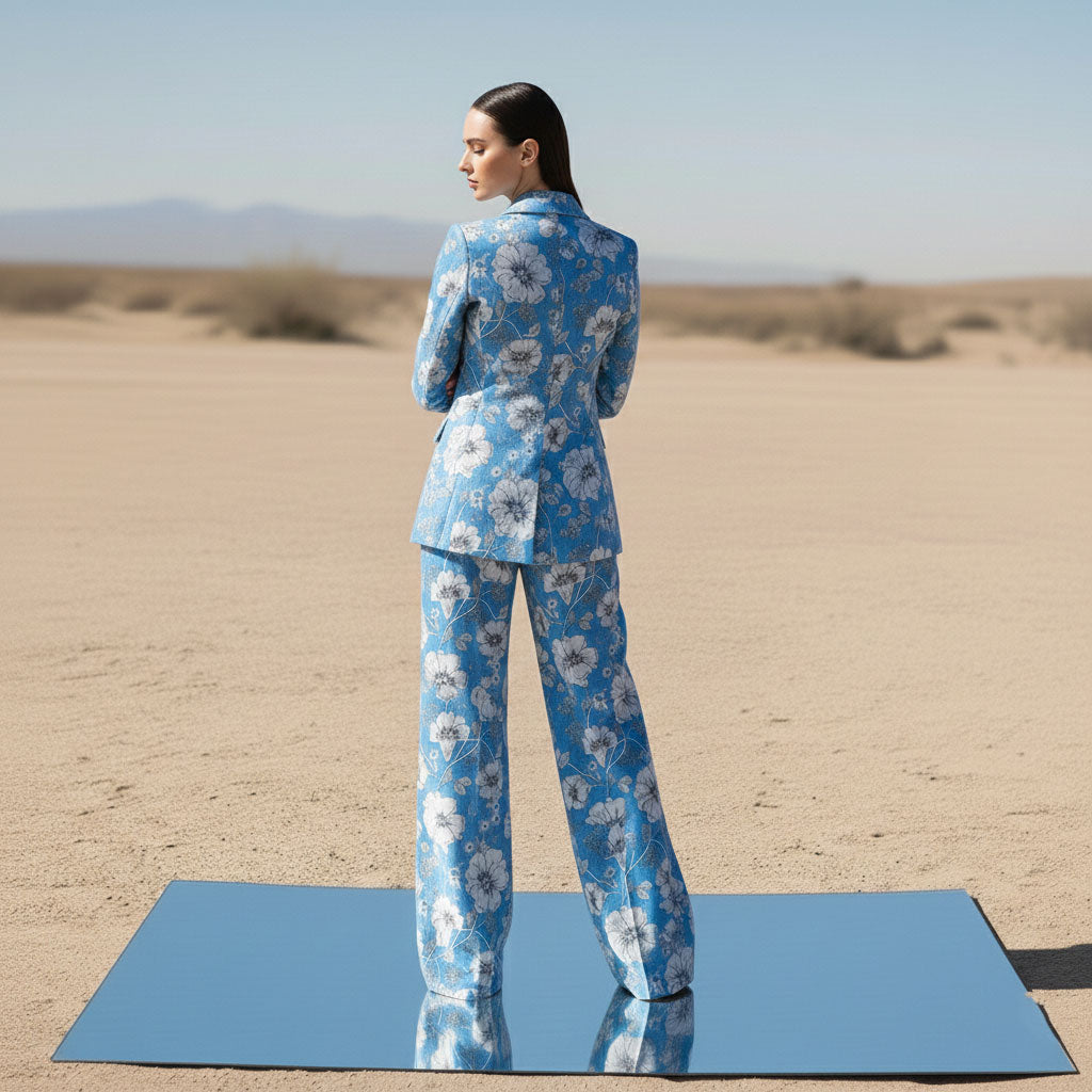 Blue Floral Luxury Velvet Power Suit - 2 Piece Women’s Suit