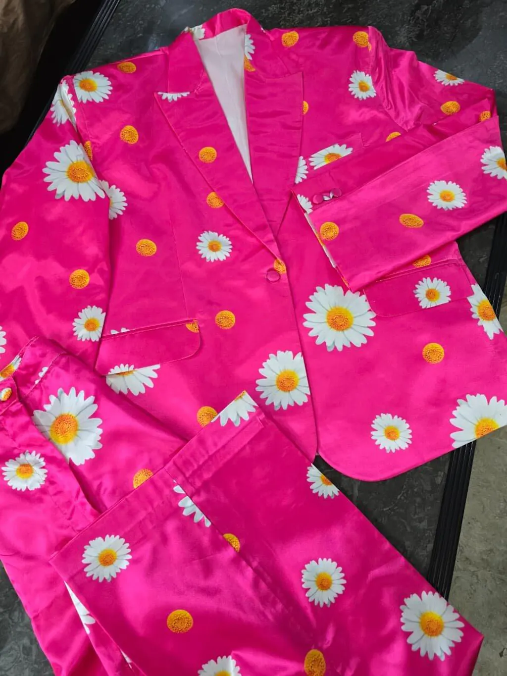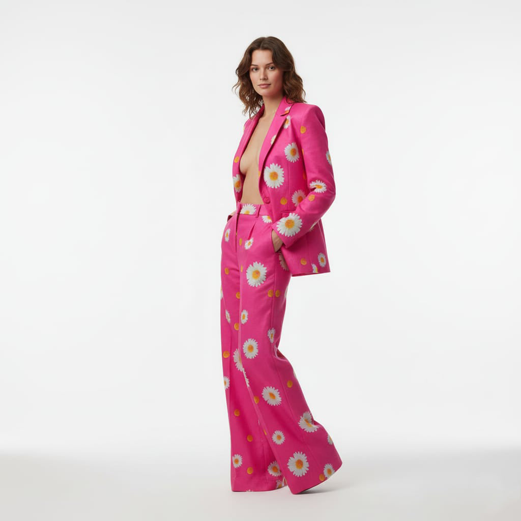 Hot Pink Daisy Print Pant Suit