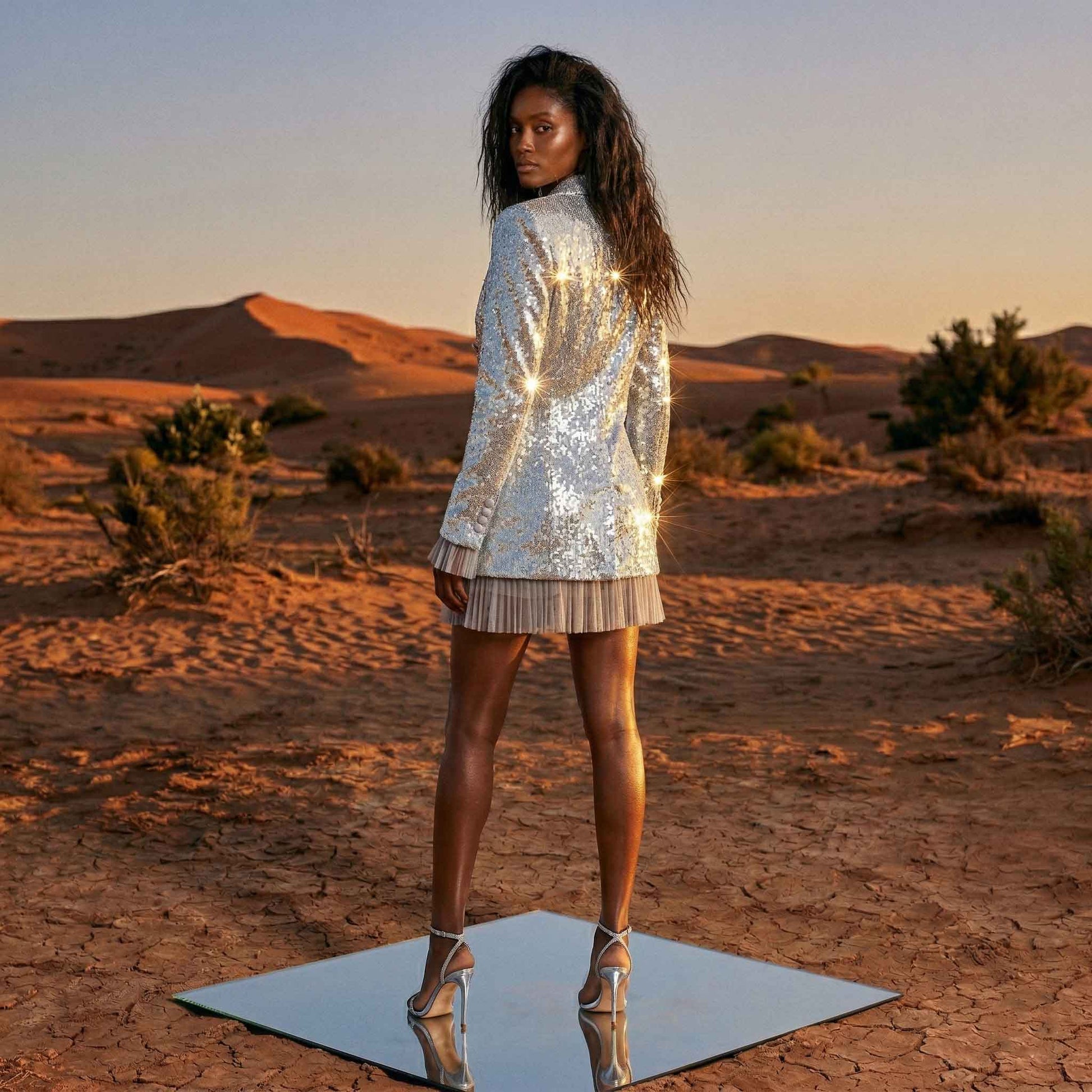 Blazer – crafted in Sequin Fabric with Soft Polyester Silk Lining.