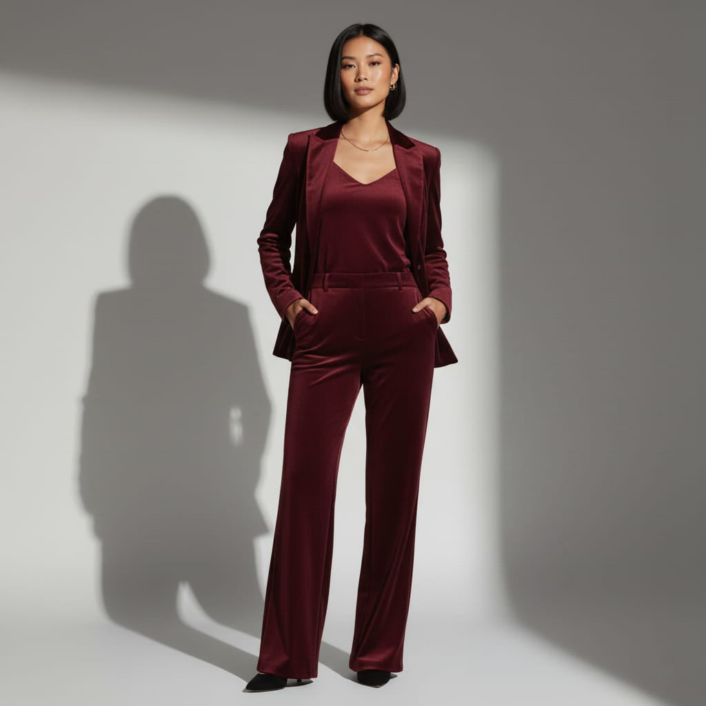 Elegant Women’s Velvet Pant Suit – premium velvet for a luxe finish. Perfect for parties, weddings, and evening wear.